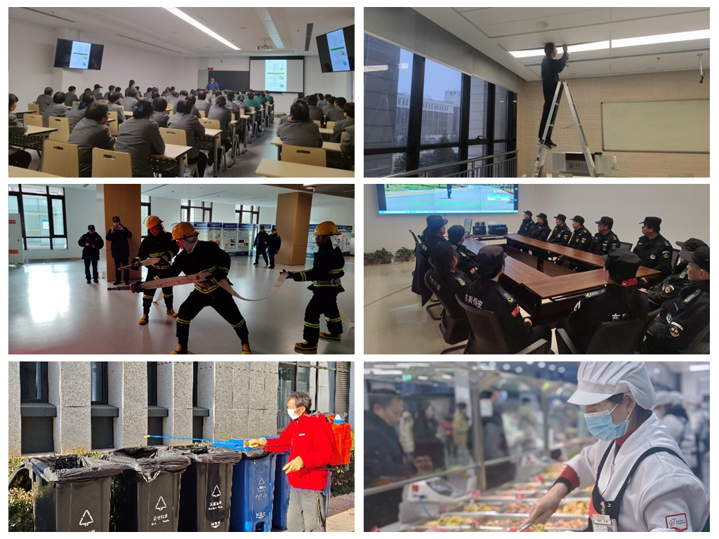 对教学楼、公寓、外部环境区域开展全面且细致的清洁工作,重点针对卫生间、课桌椅、排水口、垃圾桶等实施精细化保洁。绿化团队着重加强对苗木的精细化修剪。各食堂管理人员全员在岗、强化应急处置,提前做好防范极端天气的各项准备。在2月1日前所有食堂均照常运营,所有食堂餐饮服务不停歇,从采购、加工,到留样、洗消等各个环节均严格依规执行。中心组织各食堂开展全覆盖、全过程的安全隐患排查工作,确保设备、场地、人员、食品等重点领域的安全稳定。