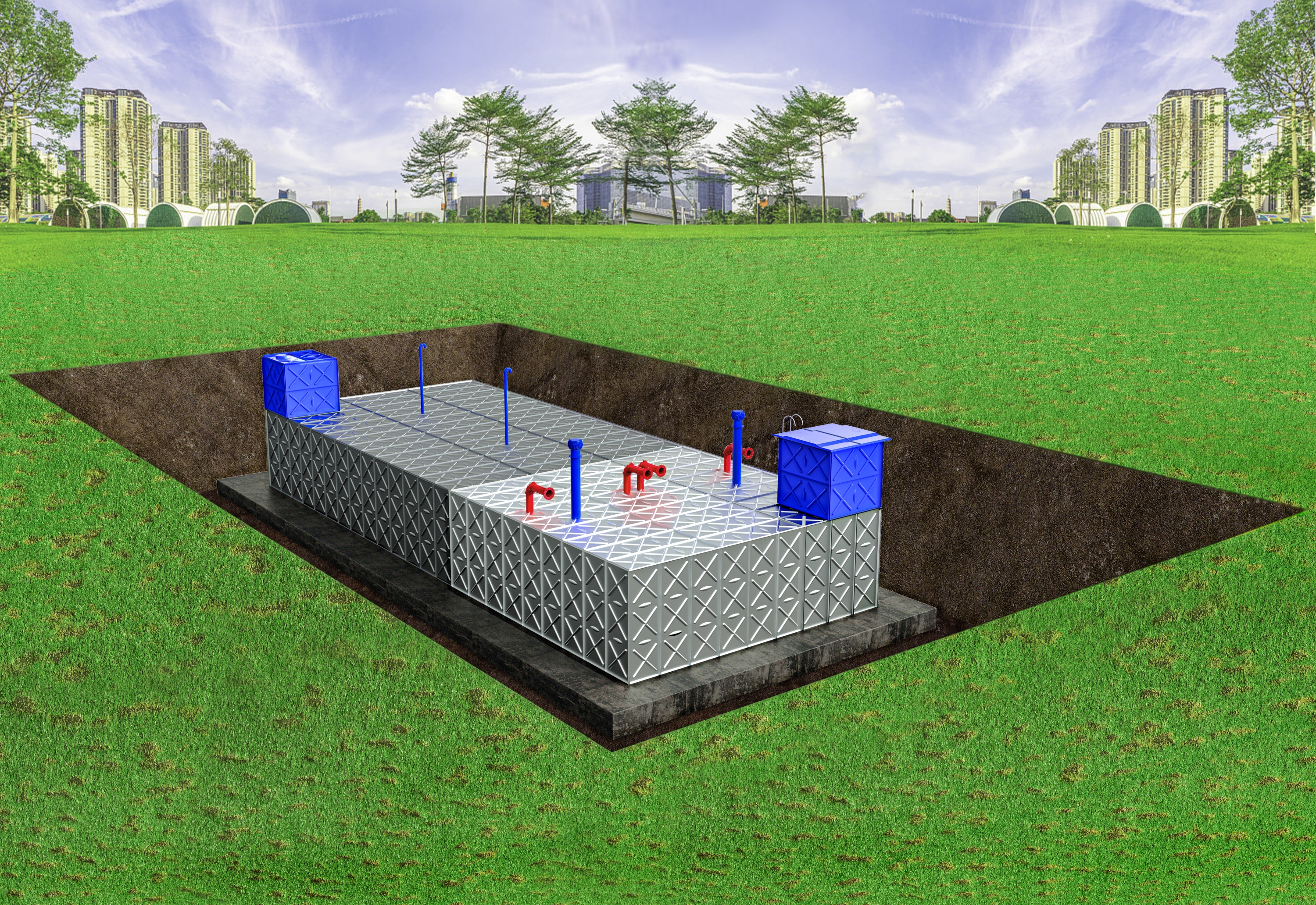 图示:地埋式消防泵站将核心设备集成于地下,极大节省了宝贵的地上空间,使地面景观规划更加灵活美观。